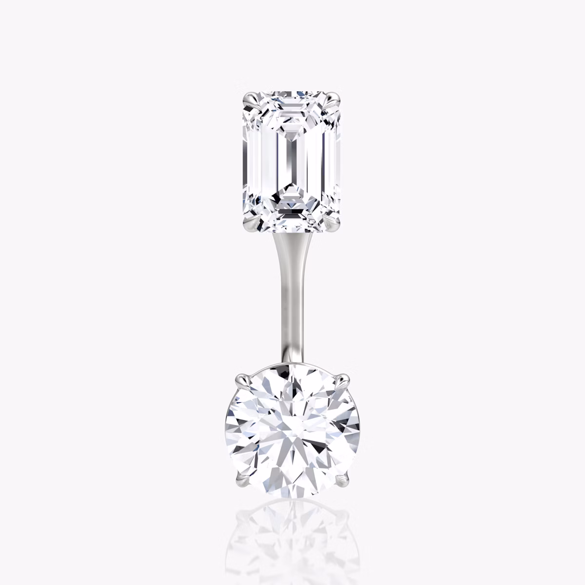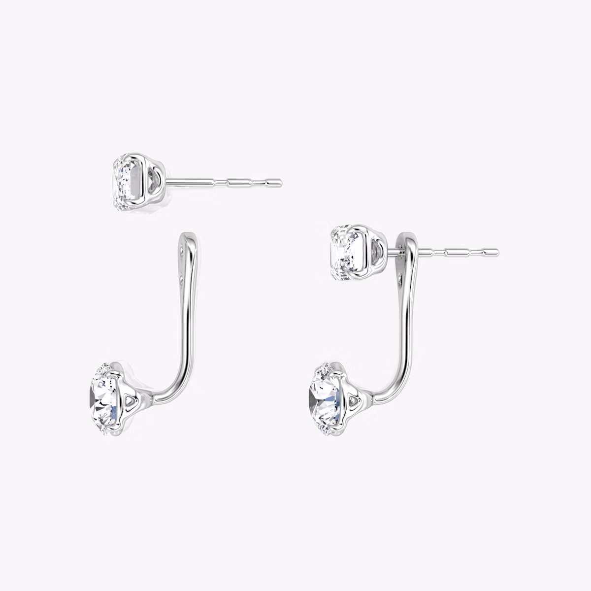 Solitaire Stud & Ear Jacket | 14k | White Gold | bottomDiamondShape: Round Brilliant | topDiamondShape: Emerald | caratWeight: 1ct