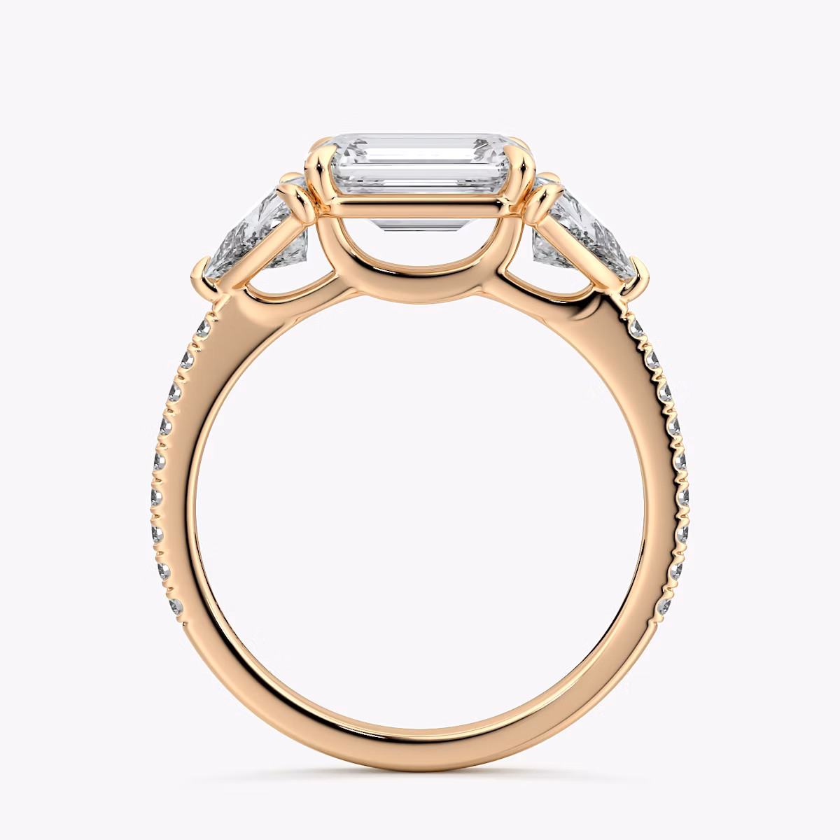 The Three Stone ring in 14k rose gold with a emerald diamond